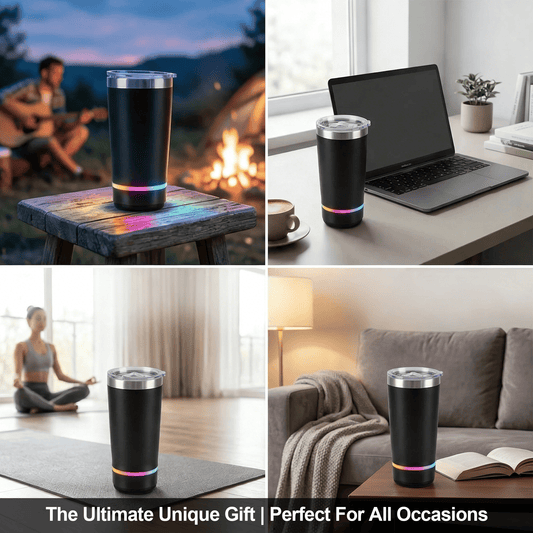 🎶20oz Bluetooth Speaker Insulated Mug🥇✨: Your Perfect Vibe for Sips & Sounds 🥳(🔓Detachable 2-Piece | RGB Lights & Temp Lock🥤)
