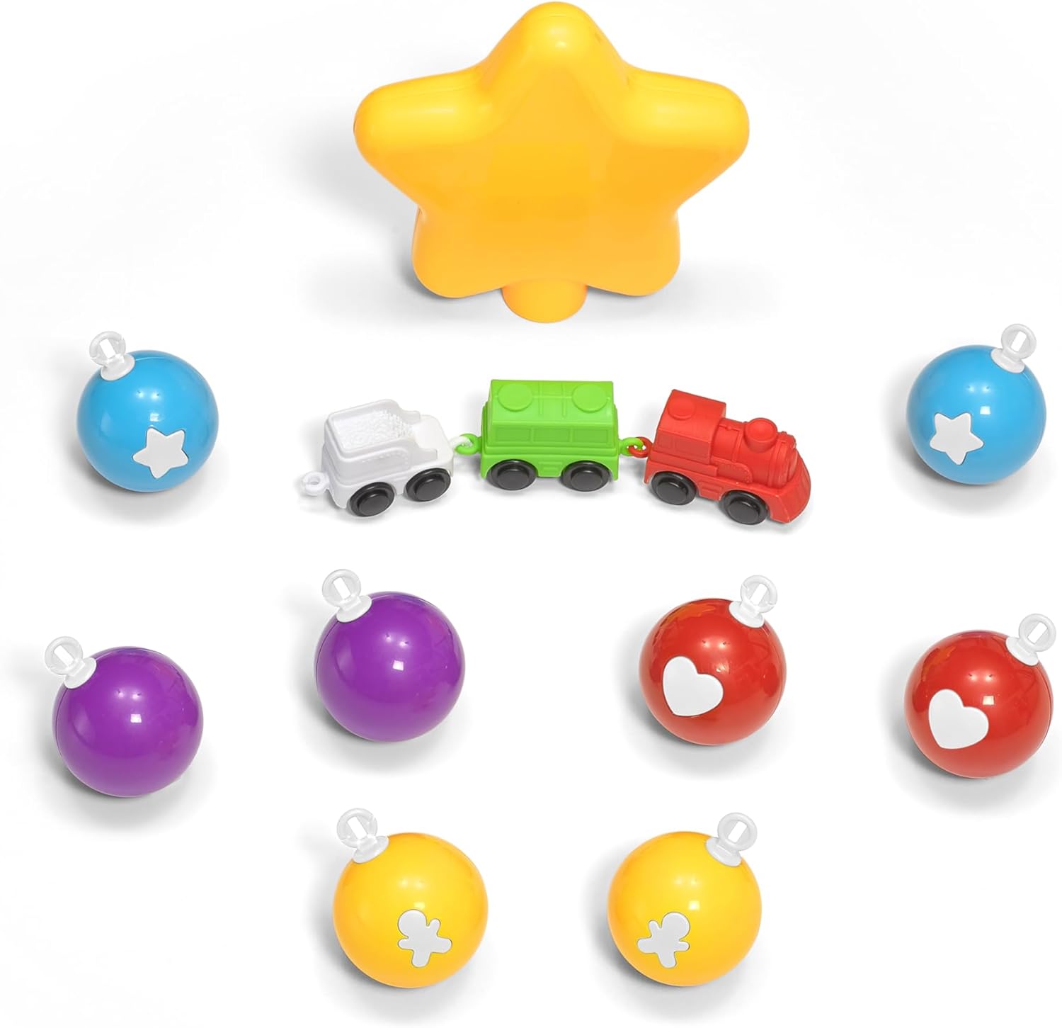 Each colorful ornament clicks in easily, helping toddlers practice motor skills and color recognition while having fun.