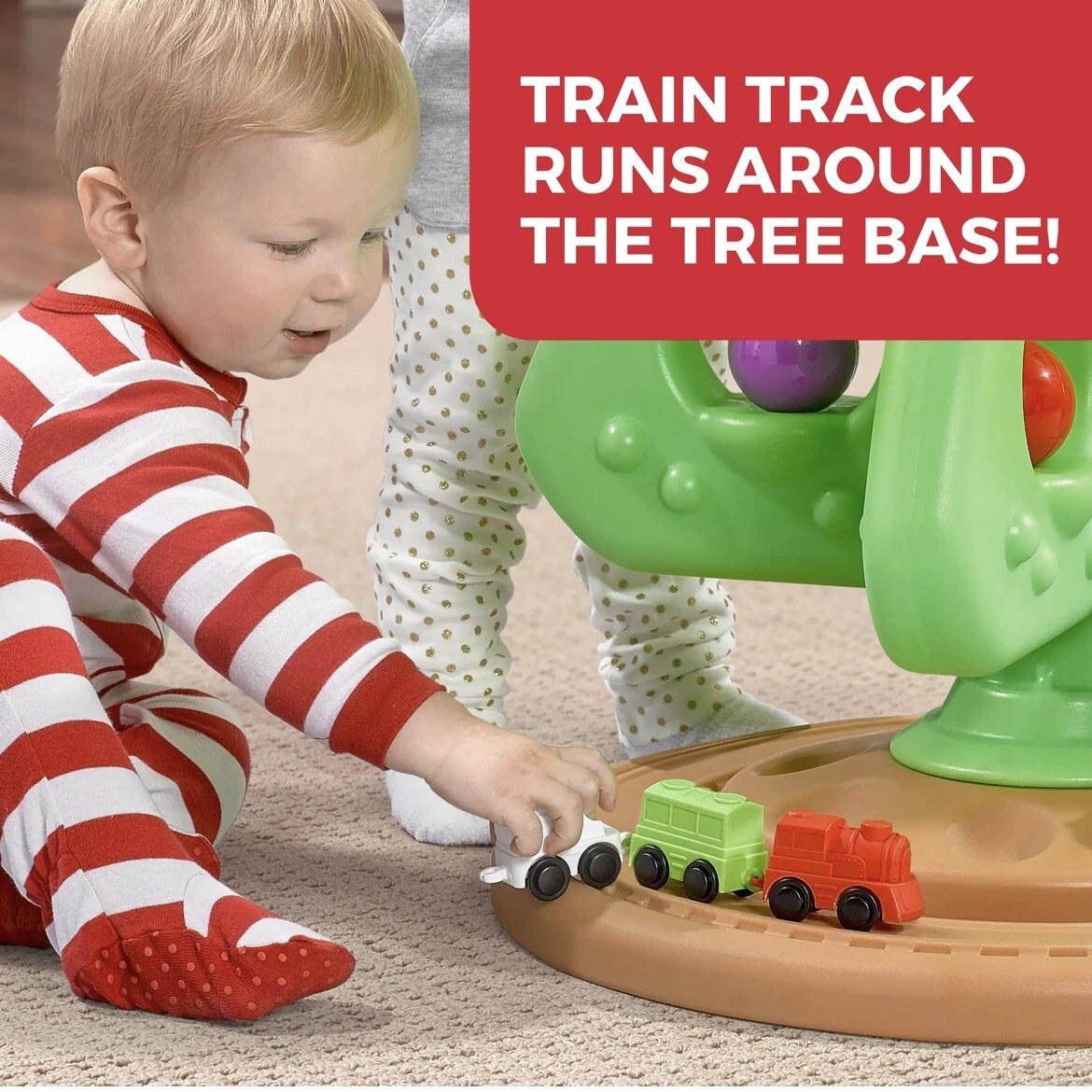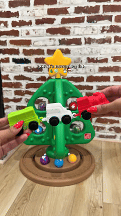 Your toddler giggling as they hang the bright ornaments, carefully placing the star on top, and watching a toy train circle the base. They’re not just imitating you — they’re learning independence, coordination, and confidence through play.
