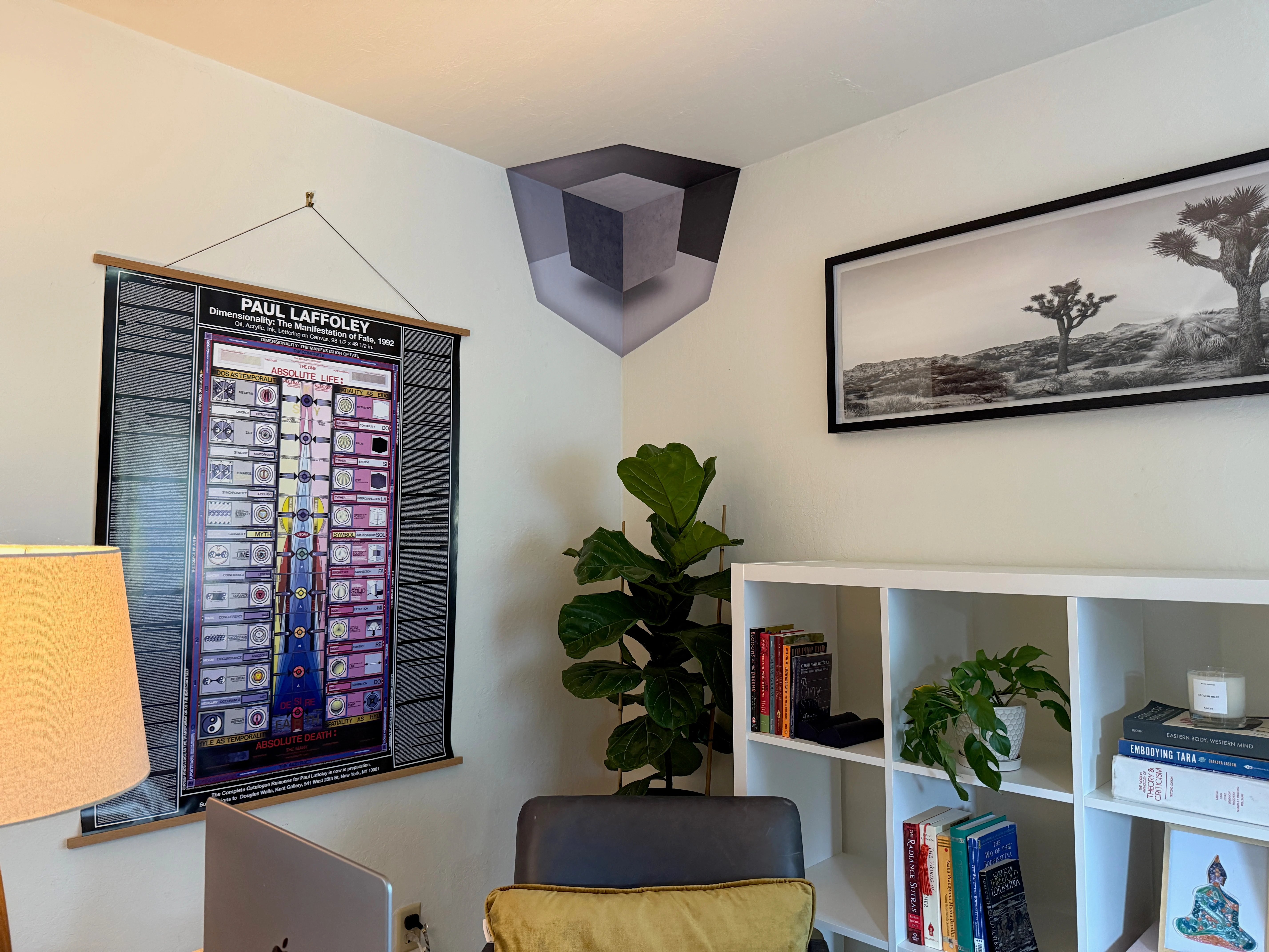 This echoes a core insight of Buddhist thought, where the term emptiness (ĹĹŤnyatÄ) refers to the constructed, interdependent nature of all appearances. What is real if I can flip my perception inside out at will? Illusory Corners is a quiet reminder of the mind's power â the power that gives rise to space, time, and everything within them.